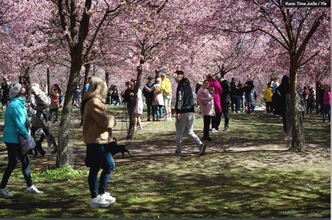ヘルシンキには「桜公園」(Kirsikka puisto)と呼ばれる場所がある。ヘルシンキ中央駅から地下鉄で15分、徒歩10分余りの場所で、5万7000平方メートル。東京ドームの1.2倍の広さ。2007年に一般開放され、毎年この時期に行われるHanamiには年々参加者が増加している。今年はさすがに公式行事は中止されたのだが、実際には多くの人が訪れた。警察発表によると、「人々は間合いをとり、平穏無事に過ごしていた」とのこと。週末としては今年最高の天気だったから、外出の誘惑にかられるのも無理はない。しかしねえ・・・。無規制路線のスウェーデンじゃ今も感染者は増加してるし、減少傾向にあるフィンランドでも公共施設やレストランが再開して人々が集まれば、ぶりかえす危険性は十分あるだろうに。